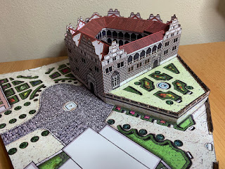 Klasické úvodné práce s vrstvením kartónu už mi nijako nevadia, získal som v tom istotu a rutinu, takže som si to patrične užíval. Rozhodne som ale neplánoval vrstviť kartón ešte aj kvôli stavbe zámku samotného. Obvodové múry boli jasne dané, konštrukčný diel som si patrične upravil, takže nemal byť problém. Ale bol :) Z nejakého dôvodu bol konštrukčný diel pôdorysu / strechy o niekoľko milimetrov kratší, než obvodové múry zámku. Trochu pasovania, skúšania potom trochu búrania a opravovania ale všetko napravili a žiadna katastrofa sa nekonala. Diely strechy našťastie tiež pasovali voči obvodovým múrom, takže dvojmilimetrové fúgy nakoniec zostali len na fotkách, strecha ich kompletne zakryla.